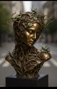 Avilés works primarily in bronze with varied patina treatments, demonstrating mastery of the foundry craft that is central to the Run Art Inside mission. His pieces range from organic nature-inspired forms (Nature, Búho) to religious iconography (Virgen de la Caridad) to metamorphic abstraction (Crisálida), showcasing remarkable versatility within the bronze medium.